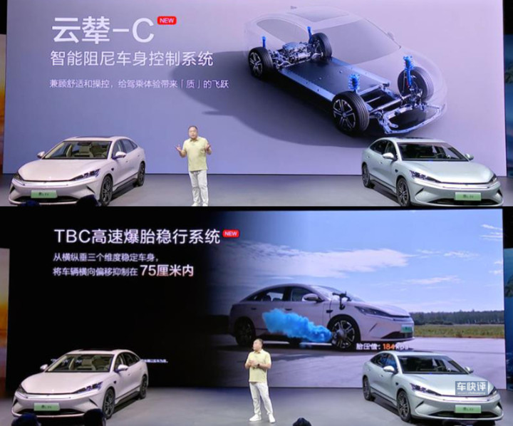 接下来该说重点了,此次上市的秦L EV云辇型在配置上还增加了云辇-C智能阻尼车身控制系统和TBC高速爆胎稳行系统两大“黑科技”。不仅起步平稳乘坐更舒适,还有着不错的驾驶乐趣。最关键的是,哪怕是在时速140km/h的情况下爆胎,TBC瞬间就能介入稳住车辆,堪称是同级别车型的安全标杆。